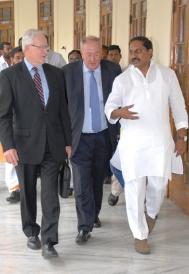l to r: WAF’s Rt. Hon. James Bolger and Dr. Kenneth Baker with Mr. N. Kiran Kumar Reddy, Chief Minister of Andhra Pradesh at the Jubilee Hall – photo Samuel Thomas |