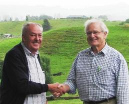 The Rt. Hon. Jim Bolger, Chairman of the WAF Advisory Board (right) congratulates Dr Ken Baker (left) on his appointment as Chairman